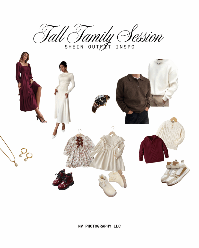 We totally get it — you don’t need to break the bank to look amazing for your fall photos! Finding cute, coordinated, and affordable outfits can feel overwhelming, so I put together some of my favorite budget-friendly Shein finds to help you style your whole family without the stress. These rich fall tones — warm reds, creamy neutrals, browns, and cozy knits — photograph beautifully and pair perfectly for those dreamy autumn sessions.